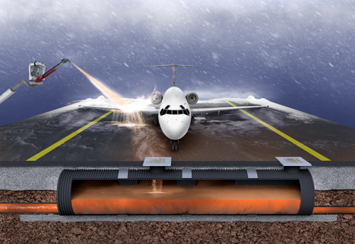 Answer: Yes, DuroMaxx® SRPE has been successfully utilized at international and regional airports across the U.S. and abroad. Subsurface storage applications include containment storage of glycol runoff for de-icing facilities and AFFF fire-fighting foam chemical runoff containment at aircraft hangars. Large diameter drainage conveyance and trenchless structural reline of deficient storm sewer infrastructure are also common uses at airports.
