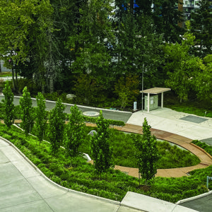 Use a vault-based system to integrate high-rate bioretention into the landscape.